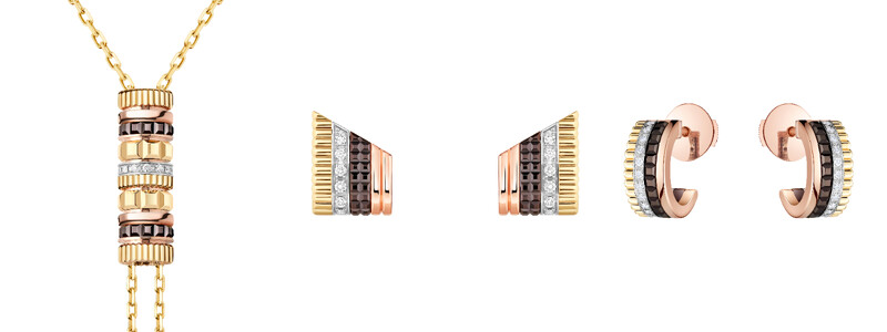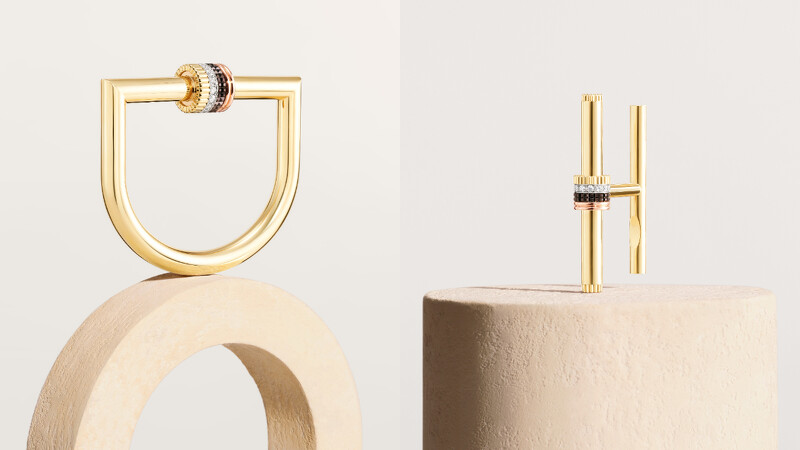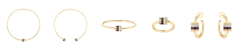 系列同步推出五款当代设计:两款颈圈、一只手镯、一枚戒指与一对耳环。作品皆以黄金、白金与玫瑰金三金结合棕色PVD处理,交织出Quatre系列专属的。细节之中蕴藏巧思:旋转机关、隐藏式结构与可滑动设计,让佩戴者自在切换风格,从优雅日常至出席盛会,皆能完美驾驭。