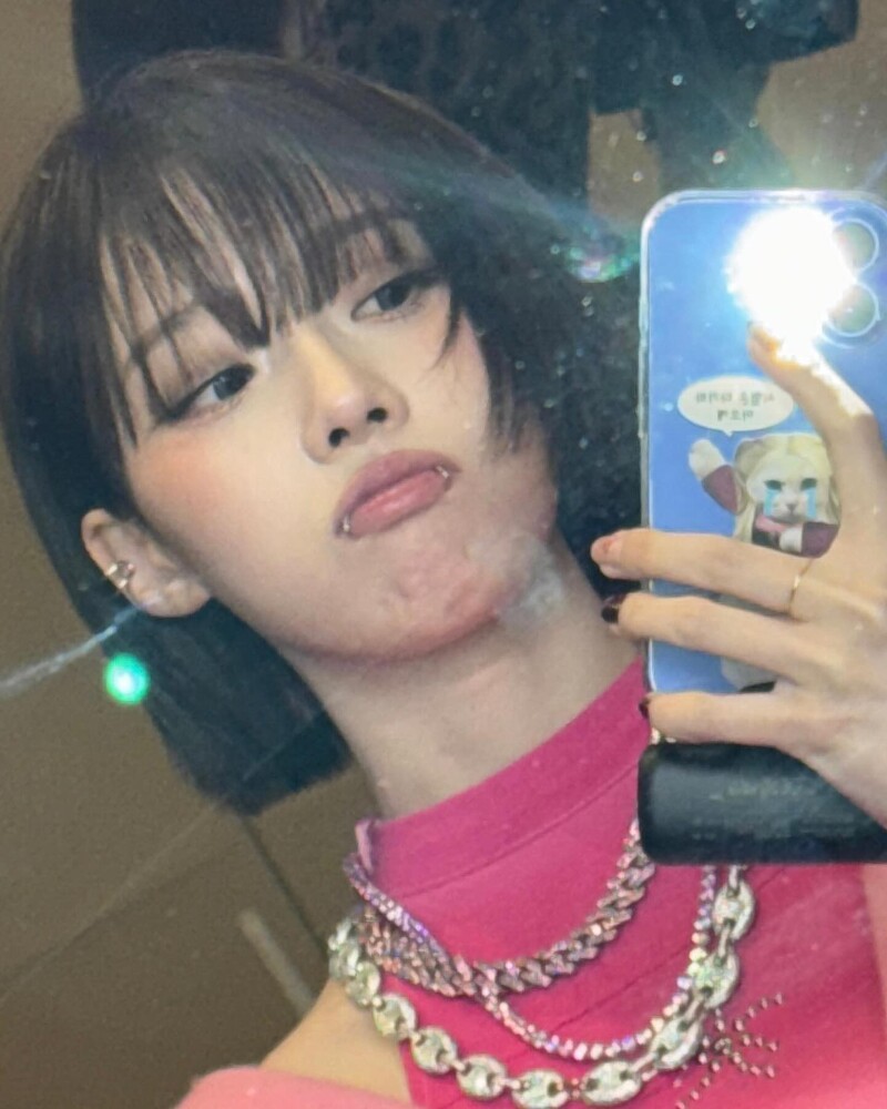 传统的韩系短髮,在剪裁和造型重点强调蓬鬆感与柔美曲线,会使用大C字捲与脸周的S捲,营造出澎润的圆弧造型,虽然近期层次髮型很有人气,但也不少人会选择少打一点层次,保留髮量,留着蓬鬆的感觉。Winter的鲍伯短髮虽然看起来还是髮量丰富,但整体是更俐落,偏直顺线条设计,强调收边,造型简洁有光泽感。这种剪裁让头型看起来更小,整体更洗鍊、简约,也很适合日常不想花太多时间打理的人。