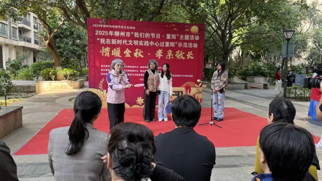 金秋送爽,孝亲暖人。10月28日上午,2025年柳州市“我们的节日・重阳节”主题活动暨“我在新时代文明实践中心过重阳”示范活动,在柳北区跃进街道长林社区冠亚・尚成国际小区启幕。活动集文化展演、趣味体验与便民服务于一体,既为老年人送上重阳关怀,更以“接地气、聚人气”的形式,让中华优秀传统文化与新时代文明实践新风尚浸润社区。